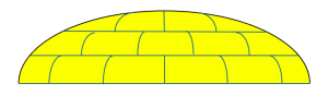 大径で、呼び径に対し厚肉の場合、鏡板を複数のセグメントに分割の上個々にプレス成形し、製缶側で接合して仕上げる鏡板です。ただし、鏡板そのものに長手や周継手があるため、法規適用品に用いる場合はその溶接施工並びに検査をどのように受検するか、鏡板メーカーとよく打ち合わせする必要があります。