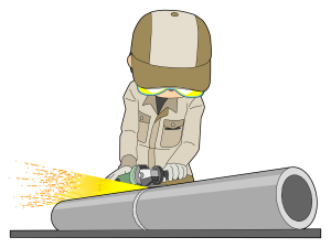 多くの場合次工程で真円矯正を行うことになるため、外径面の余盛は面一まで円滑に仕上げます。グラインダーなどを用い手動で仕上げますが、強く仕上げすぎて母材の肉厚を著しく減じないように注意します。