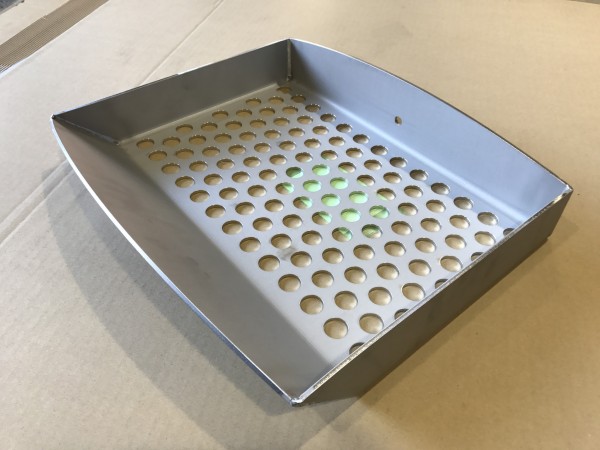 パンチング加工は定型品を加工して使用する場合には安価に利用できる為に有効ですが、特注寸法や異形孔、部分加工の場合には適用が向かない場合があります。そのような場合にはレーザー加工でパンチング開口部まで全加工を行う事で対応可能です。