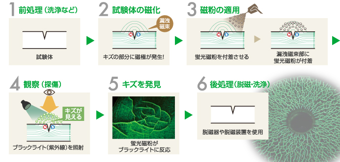 MTの原理については下記ですが、ほとんどの耐食鋼・耐熱鋼は磁性をもたないため適用することができません。